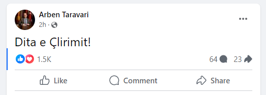 Ai e ka shkruar ““Dita e Çlirimit!”, në një postim në Facebook.