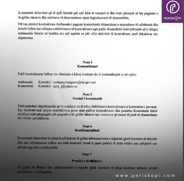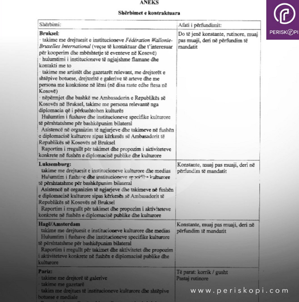 Sipas kontratave të majme që Ministria e Jashtme kishte lidhur me disa persona për çështje të kësaj natyre, si në këtë hulumtim dhe për të njëjtën temë, një muaj më herët Periskopi kishte kërkuar qasje në dokumente publike (ashtu siç e lejojnë dispozitat e ligjit Ligjit Nr. 06/L-081) lidhur me kontratat në fjalë.