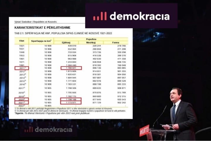 Ndryshimi i madh në shifra është paraqitur vetëm pas ardhjes në pushtet të Kurtit dhe Lëvizjes Vetëvendosje. Sipas kësaj, në kohë kur Kurti ishte bërë për herë të parë kryeministër, Republika e Kosovës kishte 1 milionë e 798 mijë e 188 banorë rezidentë, ndërsa në vitin e fundit të mandatit kjo shifër ka rënë në 1 milionë e 602 mijë e 673 banorë rezidentë.
