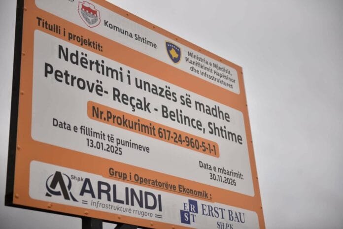 Në një projekt të financuar nga Ministria e Infrastrukturës dhe realizuar procedurat tenderuese nga Komuna e Shtimes, shpenzimi i një shume që ngre dyshime është bërë pikërisht për vendosjen e një tabele informuese që ka të dhëna për një projekt rrugor. Ky projekt, i cili ka filluar më 2025, ka të bëjë me ndërtimin e rrugës “Petrovë – Reqak – Belincë”. Por. ajo që bie menjëherë në sy është se vetëm vendosja e tabelës informuese ka kërkuar një shpenzim prej plot 10,000 euro, një shumë që është baras me koston e një kat shtëpie të zakonshme.